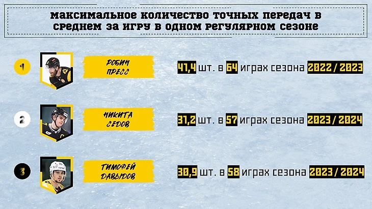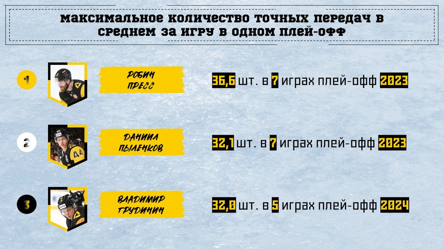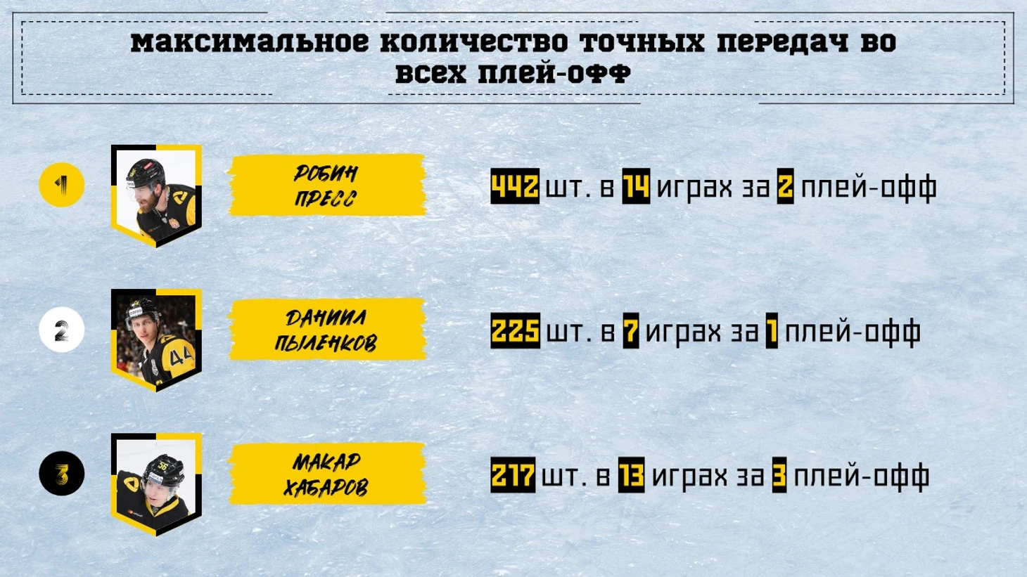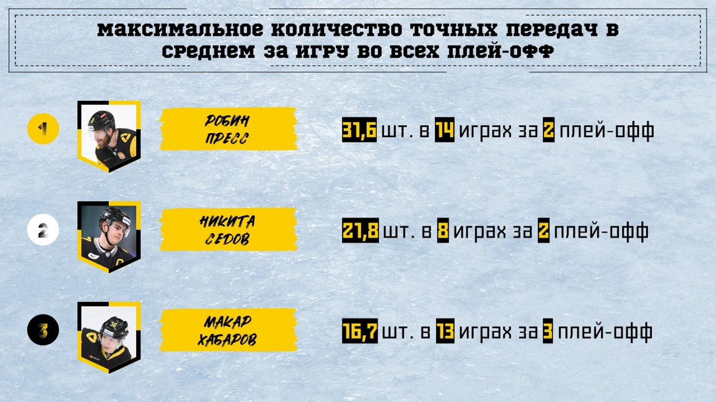 По количеству передач за 1 плей-офф на первом месте снова Пресс.
