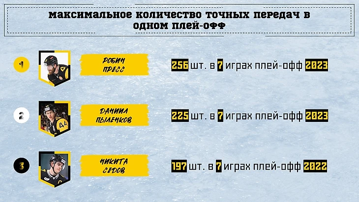 Количество за все игры плей-офф – Пресс. Пыленков смог попасть на второе место всего за 1 плей-офф.