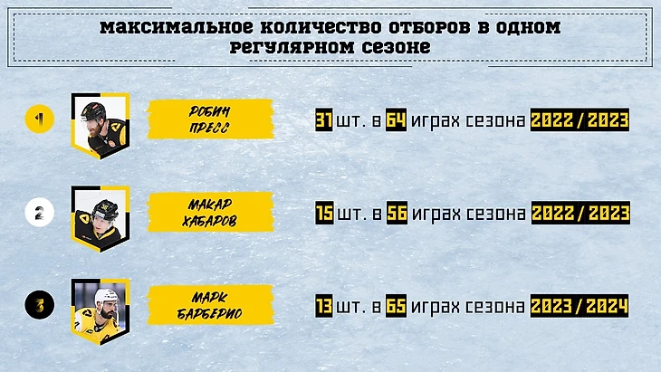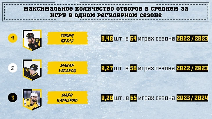 По отборам за 1 регулярку нет равных Робину Прессу. У него 3 результат за всю историю КХЛ.