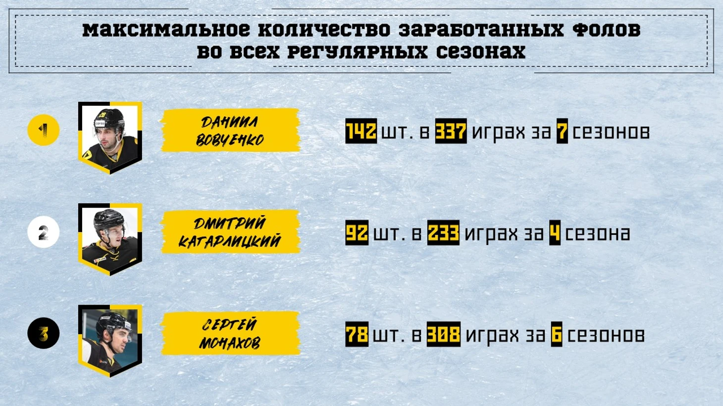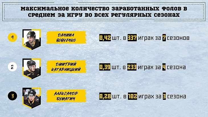 По сумме за все игры в регулярках ожидаем первый - Вовченко. На третьем оказался Сергей Монахов.