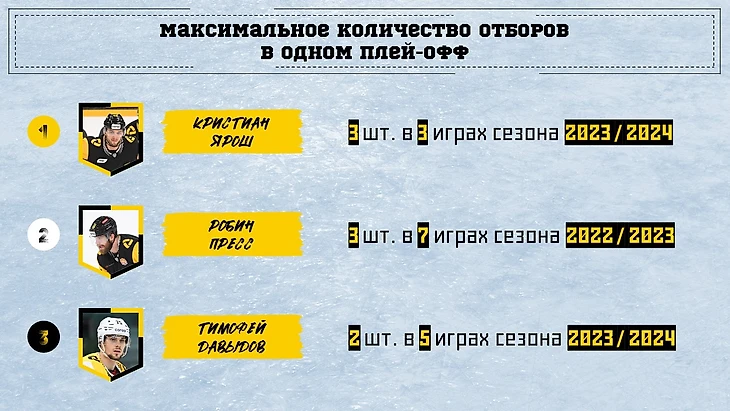 В плей-офф конкуренцию Прессу составил Ярош, но ему понадобилось на тот же результат лишь 3 игры.