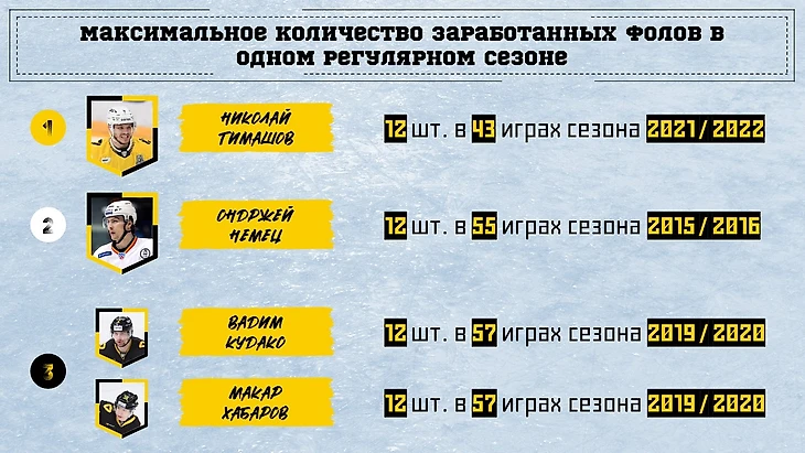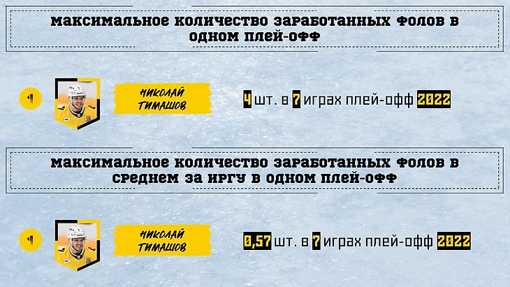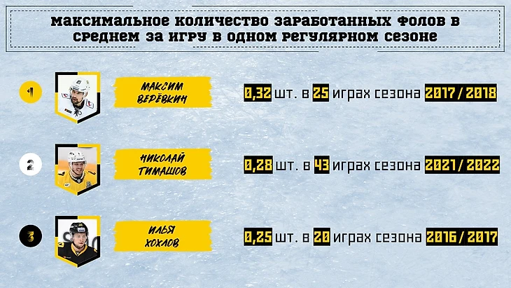 В плей-офф мало кто из защитников Северстали может похвастаться наличием в этом показателе хотя бы 1 (причем не только за 1 плей-офф, но и вообще за все матчи). А Тимашов умудрился накопить целых 4 фола, и по среднему за игру он тоже впереди всех.