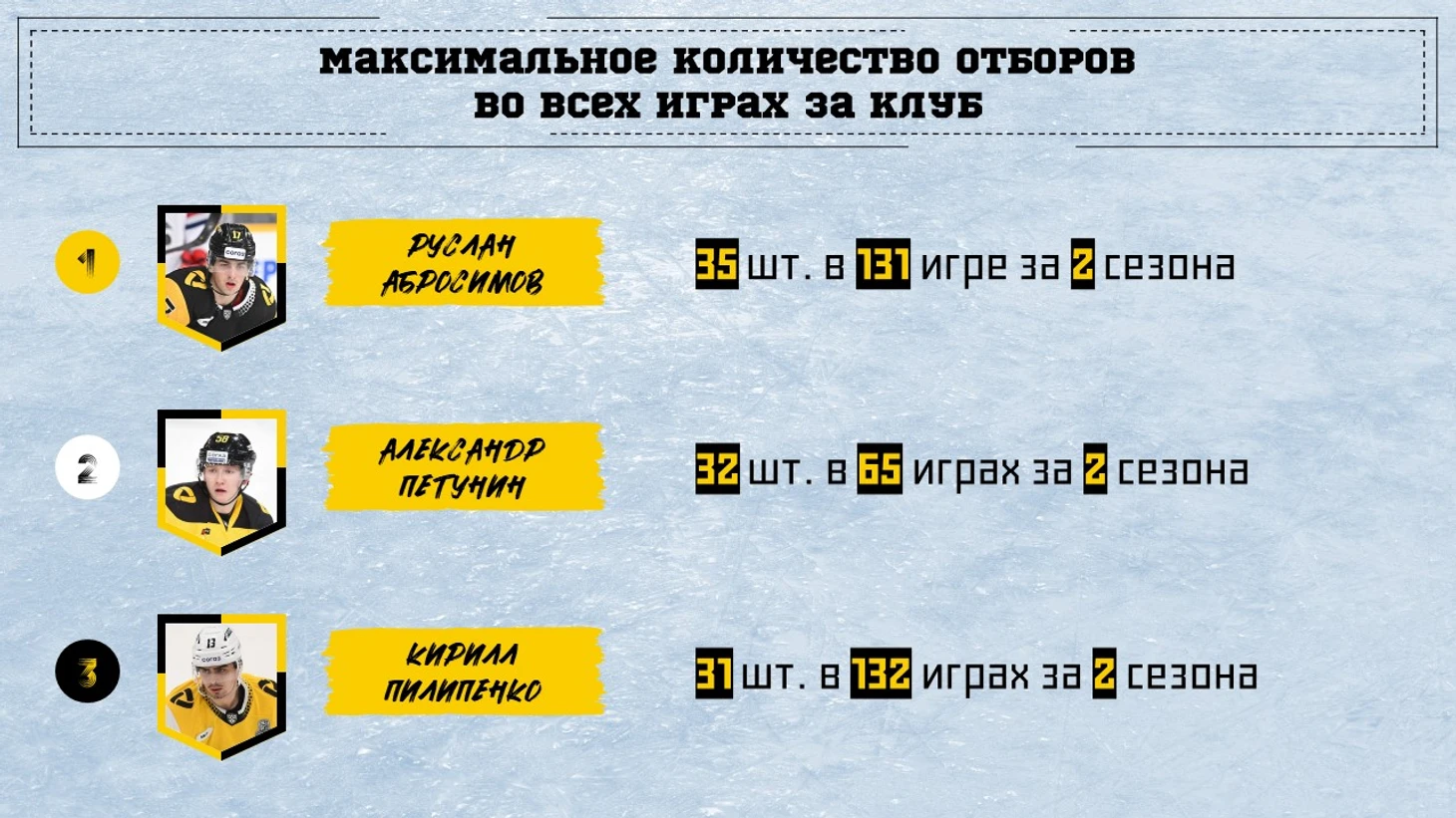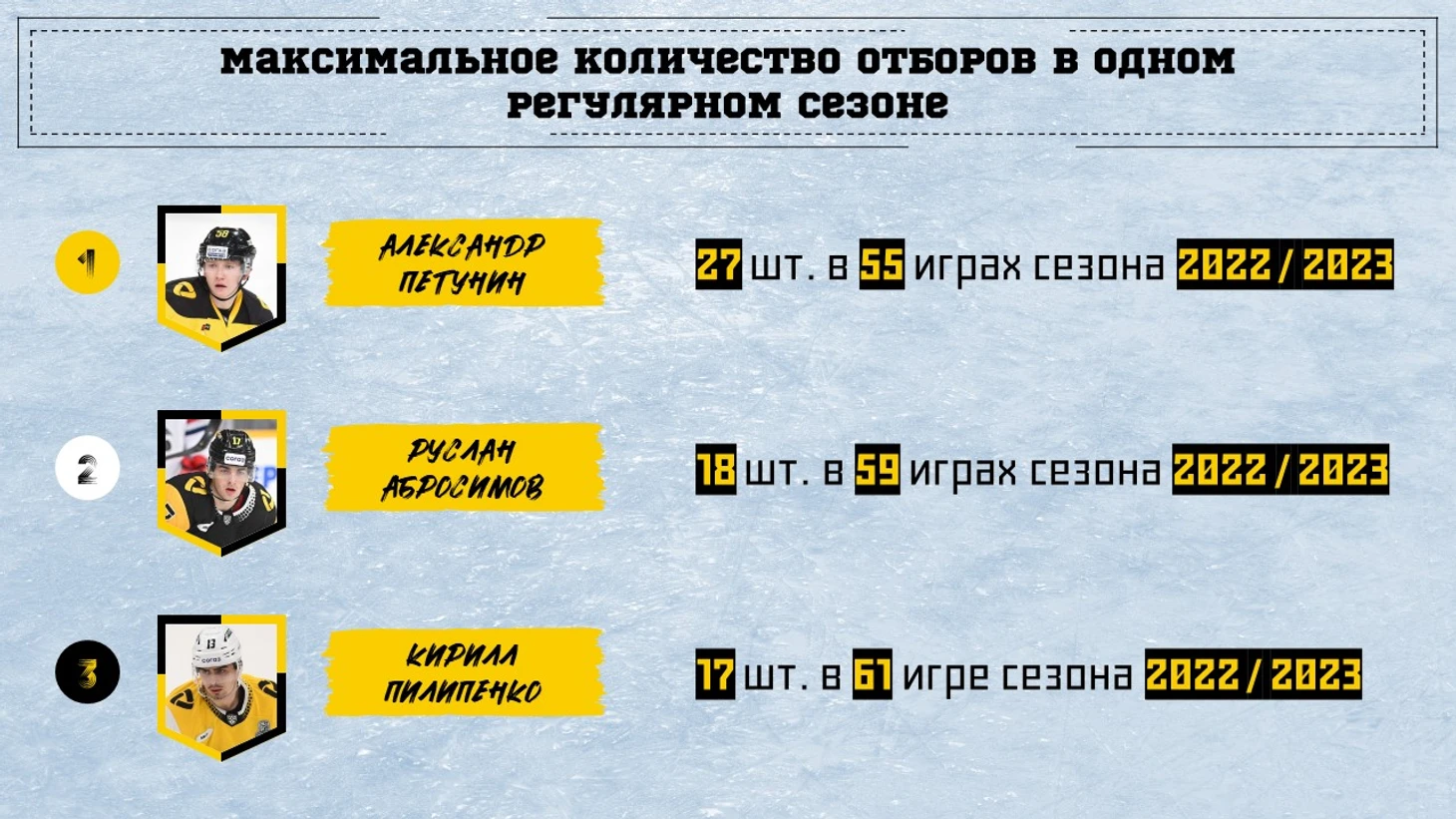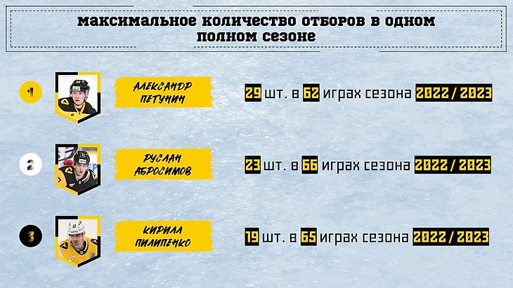 По отборам за регулярный сезон нет равных Петунину. Абросимов и Пилипенко близко друг к другу, но далеко от 1 места.