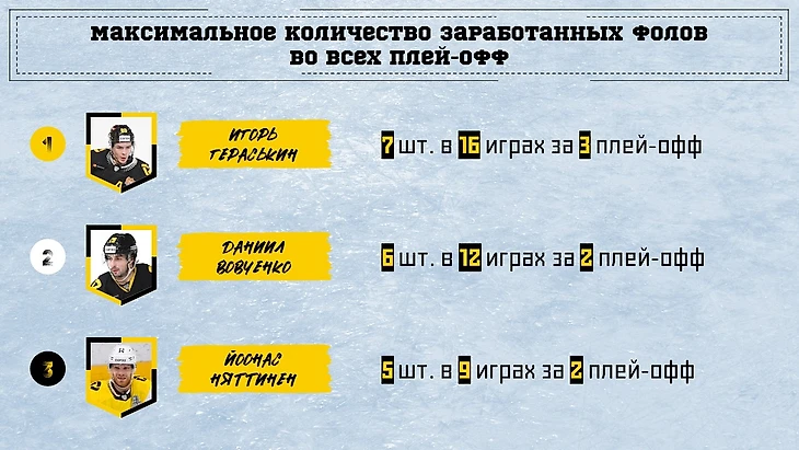 Соответственно по сумме за регулярку и плей-офф на первом месте остался Абросимов.