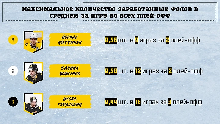 В сумме за все игры сезона (регулярка и плей-офф) Вовченко остался лидером.