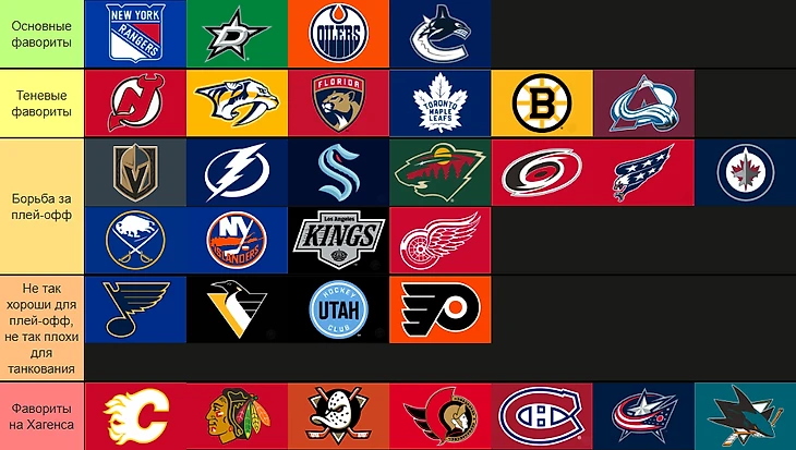 В ходе анализа составов команд НХЛ (на начало сентября этого года) был сформирован авторский рейтинг клубов перед сезоном 2024/2025 с отнесением каждого из них к определенной категории. Всего таких категория было выделено пять: