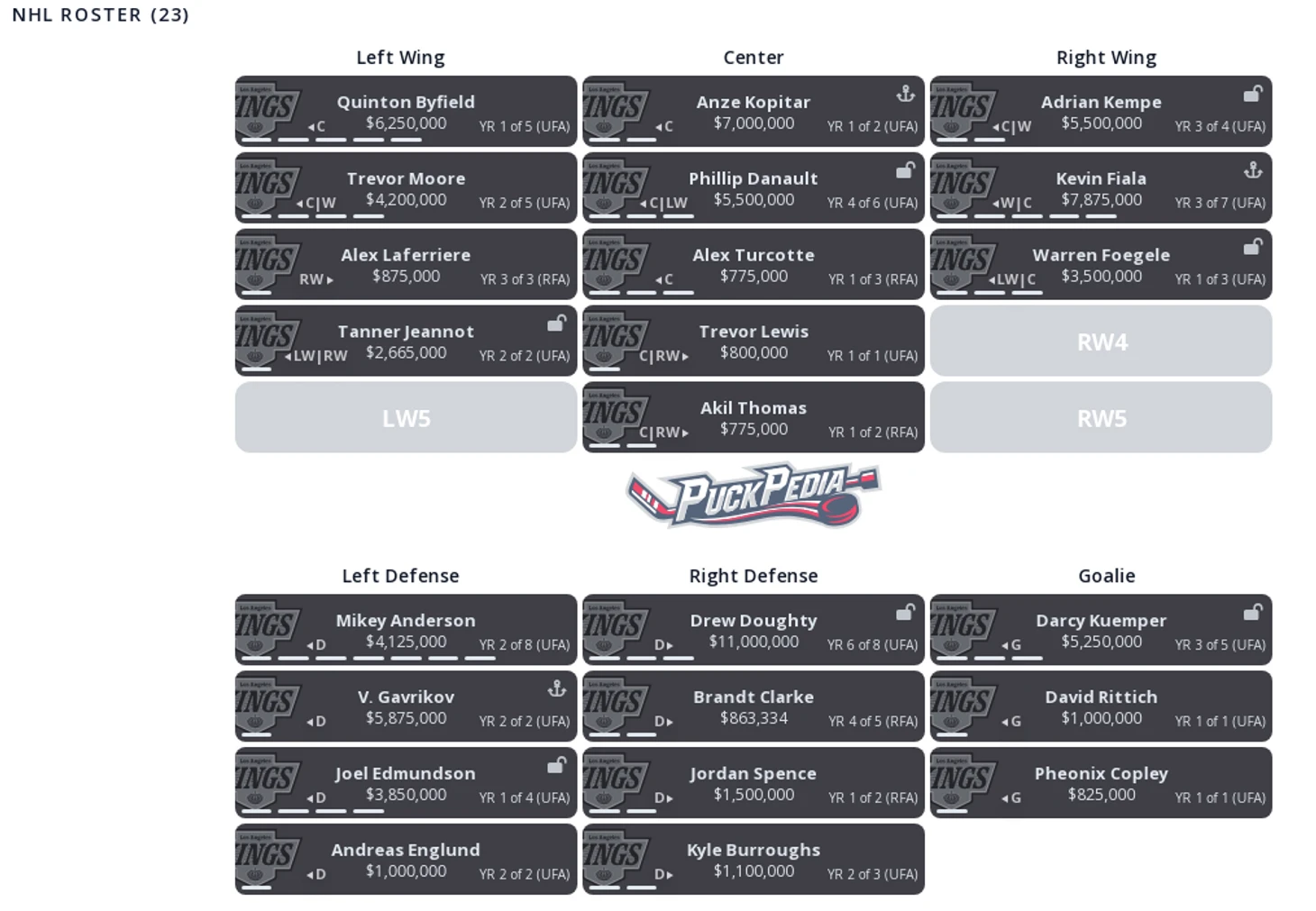 20) «Лос-Анджелес Кингз». Еще один из главных «неудачников» межсезонья. В обороне ключевой потерей стал уход Мэтта Роя, который значительно добавлял «королям» надежности и спокойствия сзади. Состоялся довольно громкий обмен с «Кэпиталз», в ходе которого критикуемый центр Пьер-Люк Дюбуа был заменен на критикуемого голкипера Дарси Кемпера, который призван сменить в рамке Кэма Тальбо. Почему-то думается, что бэкап Давид Риттих, довольно успешно проявивший себя в регулярке прошлого сезона, сумеет навязать ему борьбу за звание первого номера команды. Ушел также к «нефтяникам» нападающий Виктор Арвидссон. Блэйк Лизотт теперь предстанет в качестве игрока «Пингвинз». Из заметных приобретений можно назвать нападающих Фогеле и Жанно, а также защитников Эдмундсона. Учитывая смену тренера во второй половине прошлого сезона, а также фактор старения лидеров команды Анже Копитара и Дрю Даути, перспективы команды на плей-офф пока неоднозначны. Очевидно, «короли» будут в гонке за играми на вылет, однако на данном этапе, по мнению автора, их позиция выглядит слабее конкурентов по дивизиону – «Ойлерз», «Кэнакс», «Голден Найтс» и «Кракен». Помочь может еще один шаг вперед в развитии Кунтона Байфилда, который в прошедшем сезоне добился существенного прогресса в игровой продуктивности.