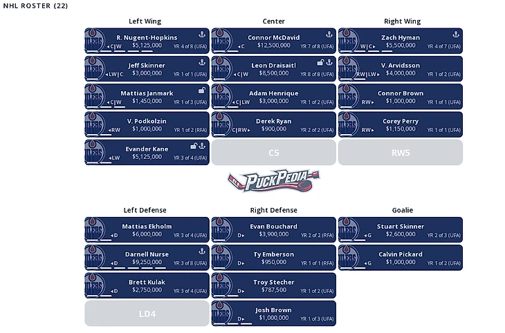 3) «Эдмонтон Ойлерз». Как уже было сказано выше, их чемпионское окно, как и у «синерубашечников» из Нью-Йорка, стремительно закрывается, не успев открыться. Имея под кепкой один из худших контрактов лиги в лице Дарнелла Нерса, «нефтяники» будут ломать голову в ближайшие два лета над новыми соглашениями со своими лидерами – Коннором МакДэвидом (контракт истекает в 2026), Леоном Драйзайтлем (2025) и Эваном Бушаром (2025). Дальше – неизвестность. В прошедшем плей-офф ребята под руководством Криса Кноблауха доказали, что они опасны на уровне плей-офф. При этом летом удалось добавить в топ-6 две ударные единицы в лице Джеффа Скиннера, которому не терпится дебютировать на уровне плей-офф, и Виктора Арвидссона. Однако «Блюз» успели подпортить межсезонье, забрав через оффершиты молодых Диллана Холлоуэя и Филипа Броберга. Часики тикают.