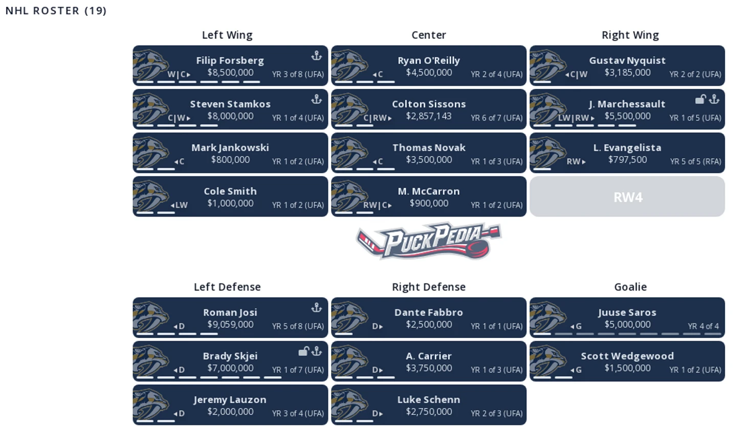 6) «Нэшвилл Предаторз». Я знаю, что многих любителей НХЛ летние приобретения «хищников» привели в восторг. Многие даже стали их причислять едва ли не к главным контендерам грядущего сезона. На положение в моем рейтинге этого клуба подписания Стивена Стэмкоса, Джонатана Марчессо и Брэди Шея также оказали влияние. Этому поспособствовало и наличие в команде двух важных, на мой взгляд, составляющих успеха любой команды НХЛ – элитного защитника в лице превосходного Романа Йоси (который в целом, на мой взгляд, является лучшим защитником лиги последних лет) и отличного голкипера в лице Юусе Сароса. Первая тройка Форсберг – О'Райлли – Нюквист, сыгравшаяся в прошлом году, и Эндрю Брюнетт на тренерском мостике также добавляют очков к их рейтингу. Однако на данный момент большой скепсис вызывает средний возраст лидеров, спорной остается мотивация уже выигрывавших Кубок Стэнли ветеранов в лице О'Райлли, Стэмкоса и Марчессо, а также не очень впечатляюще на первый взгляд является боттом, который требует добавлений на дедлайне. В любом случае это очень серьезная заявку на нечто большее, нежели просто выход в плей-офф.