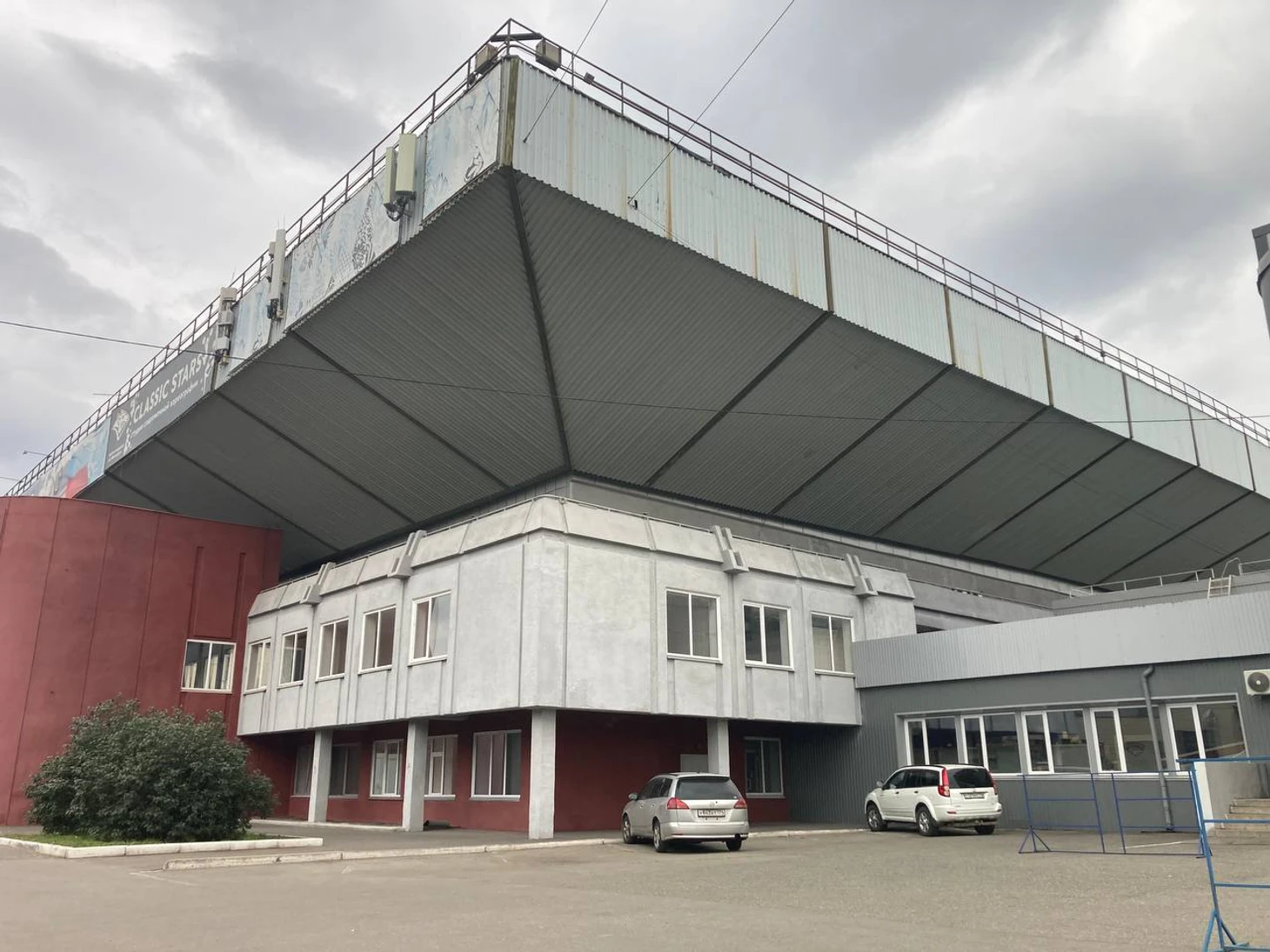 Внешне дворец спорта не спутать с аналогами: разноцветный орнамент делает его модным даже в 34-летнем возрасте. Чего, впрочем, не скажешь о громоздкой прямоугольной крыше.