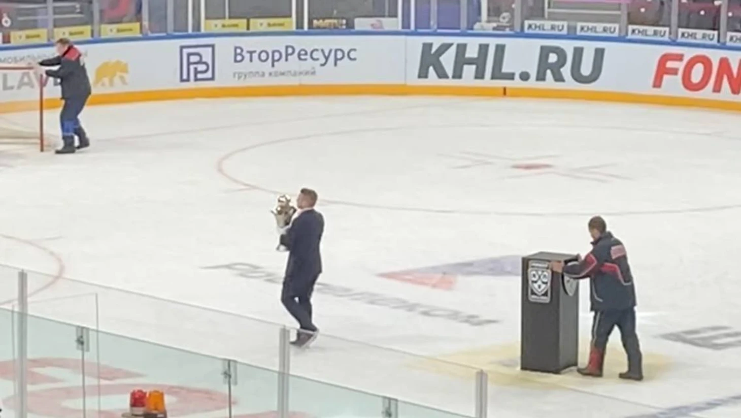 Сам трофей оказался никому не нужен. Игроки «Локомотива» лишь сделали протокольное фото на фоне, а вот прикасаться не стали. После рукопожатия за кубком вышел специально обученный человек – в белых как лед перчатках.