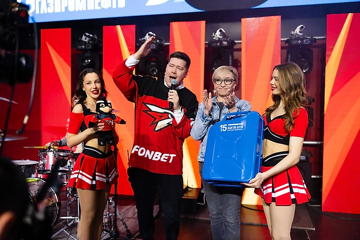 В перерыве матча комментатор взял у героини интервью, которое вывели на видеокуб в центре Арены, а 12 тысяч болельщиков скандировали поздравления. Победный дух сохранился на трибунах до конца: игра завершилась триумфом «Авангарда».