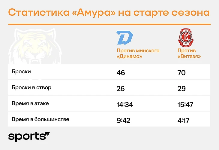 По сравнению с матчем в Минске, прогресс в атаке у «Амура» есть. Хабаровчане гораздо больше стали бросать (в полтора раза) и на минуту с небольшим увеличили время в атаке. «Витязь» по основным показателям (кроме большинства) уступил.