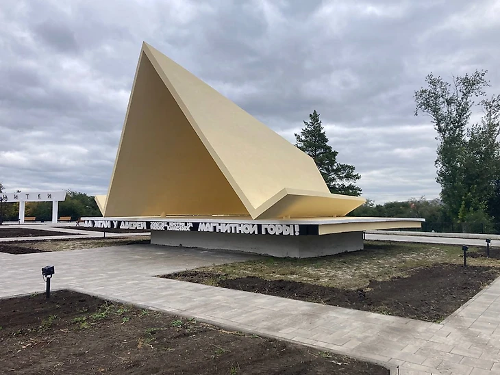 На основании высечены стихи одного из строителей Магнитки Бориса Ручьева:
