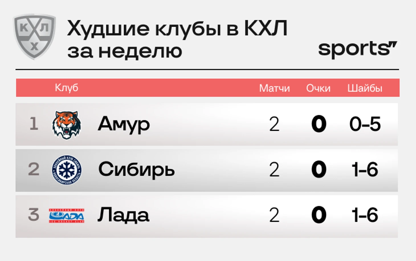 «Сибирь», «Лада» и «Амур» не просто проиграли по два матча. На троих эти команды забросили в них всего две (!) шайбы. Можно делать скидку на силу соперников, хотя тот же Хабаровск плохо сыграл с минским «Динамо» (0:3) и «Витязем» (0:2).