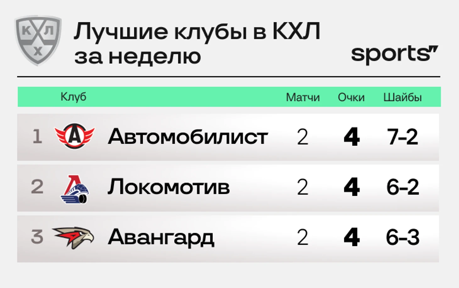 Лучшие клубы: «Локомотив», «Автомобилист» и (внезапно) «Авангард»