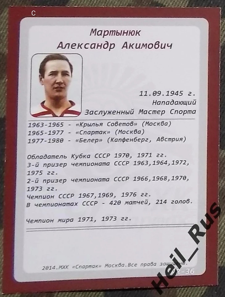 В этот день, 11 сентября, 79 лет назад родился знаменитый хоккеист московского «Спартака» Александр Мартынюк