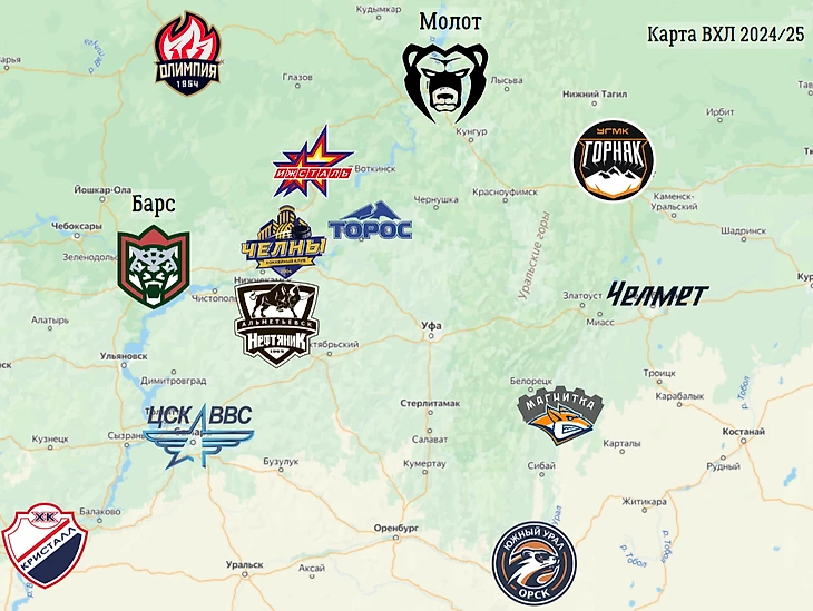 В ВХЛ представлен 31 город России, по две команды выступают из Санкт-Петербурга и Москвы.