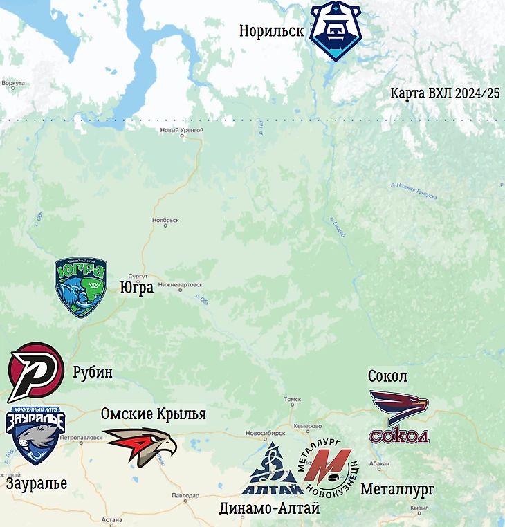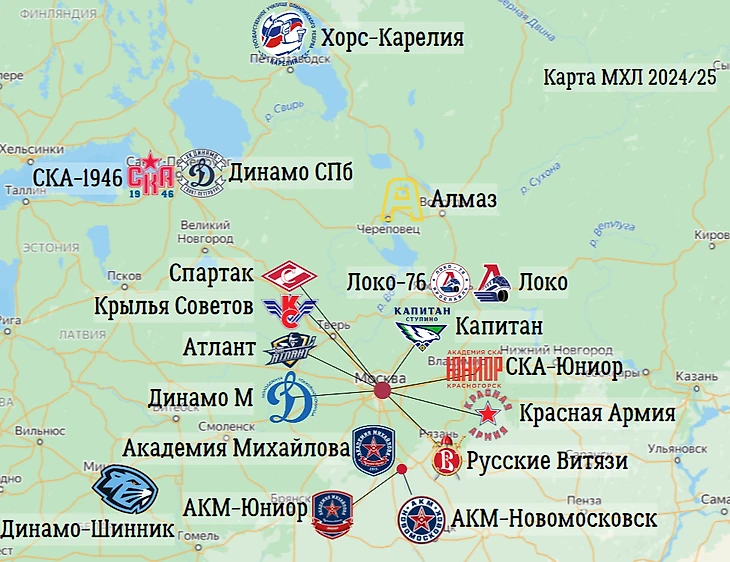 Самый восточный клуб — красноярский «Сокол», а самые западный — «Динамо СПб». В плей-офф выйдут 16 лучших команд, которые будут бороться за звание Чемпиона России.