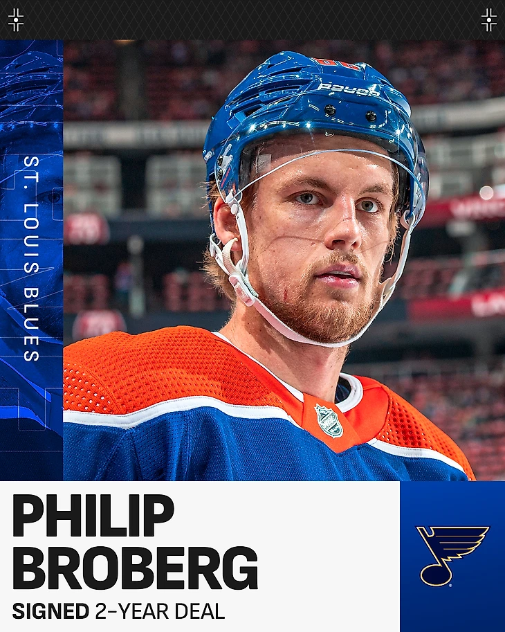 Армстронг, генеральный менеджер команды, встряхнул межсезонье, сделав оффер-шит двоим игрокам «Ойлерс» – Бробергу и Холловэю. Оффер-шиты – вещь редкая для НХЛ, поэтому каждый такой случай разбирается под микроскопом. Так было и в этот раз. «Ойлерс», имеющие проблемы с потолком зарплат, не смогли повторить предложения, сделанные «Блюзменами», поэтому потеряли игроков, но получили пики на драфте следующего года.