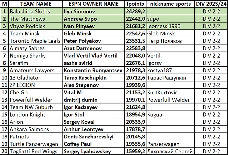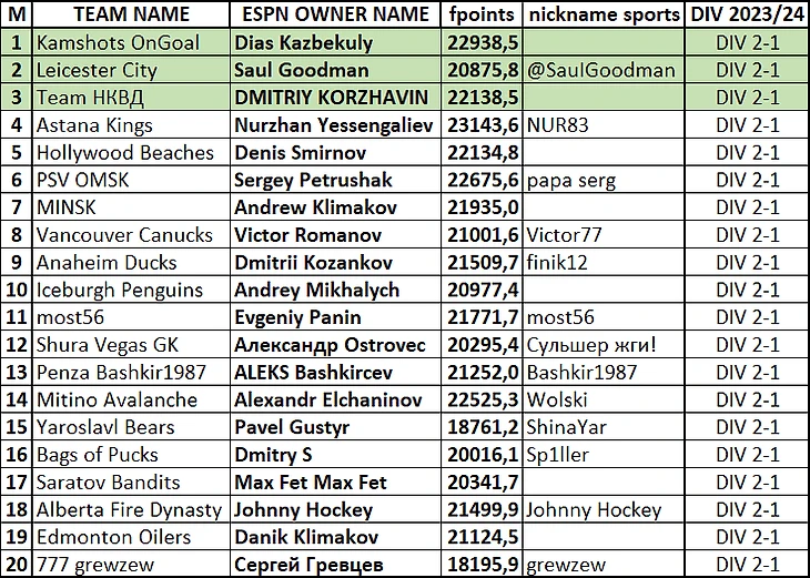 Итоги сезона 2023/24 (клик по тексту = переход в гуглодок)