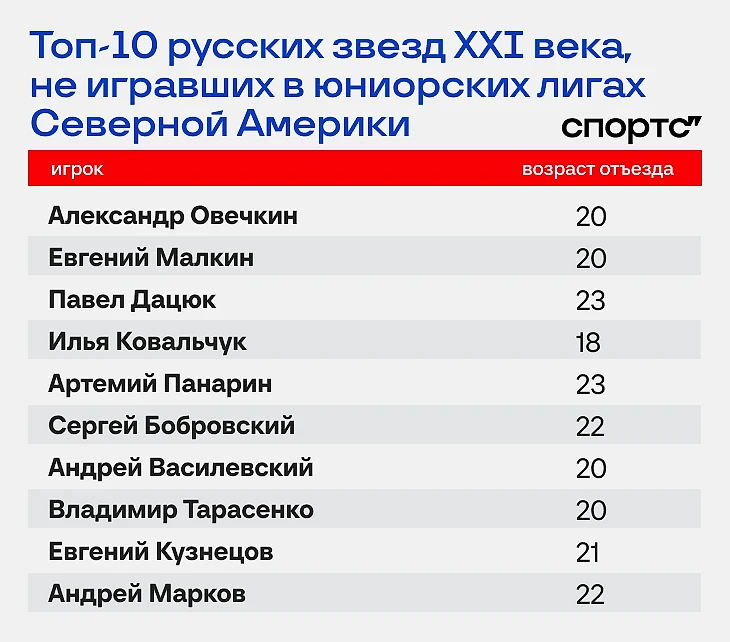 За Кучеровым вполне легитимные примеры, но где в этом списке заканчиваются игроки, которых можно назвать звездами? На Свечникове? Сергачеве? А если сравнить с таким же топом парней, которые в заокеанские юниорки не ездили?