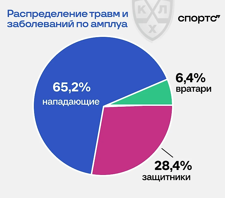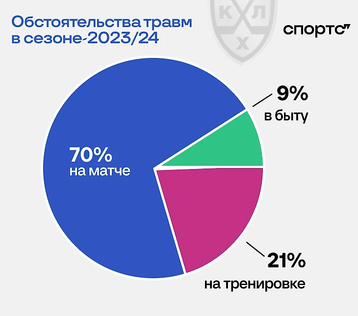 ● 70% травм игроки получали во время матчей. В отчете дополнительно поясняется, что в сравнении с сезоном-2022/23 уменьшилось число травм на тренировках. При этом каждая десятая травма никак не связана с хоккеем.