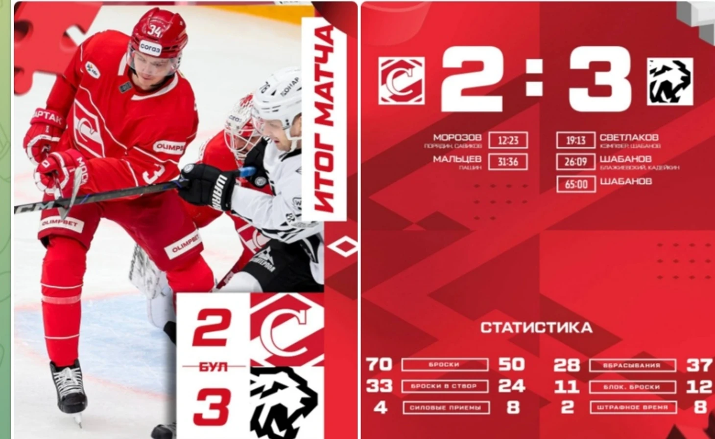 Челябинский «Трактор» вырывает победу у «Спартака» – 3:2 после серии буллитов