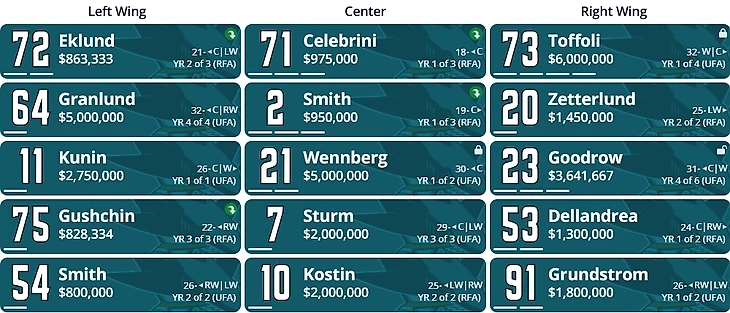 Как уже писал многократно, у «Акул» есть проблемы с праворукими защитниками, как в основе, так и в проспект-пуле (одном из сильнейшим в лиге, кстати – с ним можно ознакомиться здесь). Так как на прошедшем драфте до 11-го выбора не осталось лучших таких дэфов (Левшунов, Якемчак и Парек были выбраны раньше) и на следующей ярмарке талантов в топе их не видно, Гриру придется следующим летом усиленно над этим работать. Но об этом ниже.