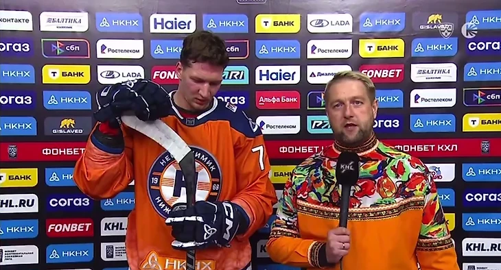 Журналист Александр Халин пришел на интервью в русском народном костюме. Его первый вопрос нападающему «Нефтехимика» Егору Корбиту звучал так: «Здрав будь, боярин! Удается ли сдерживать набеги войска дальневосточного?»