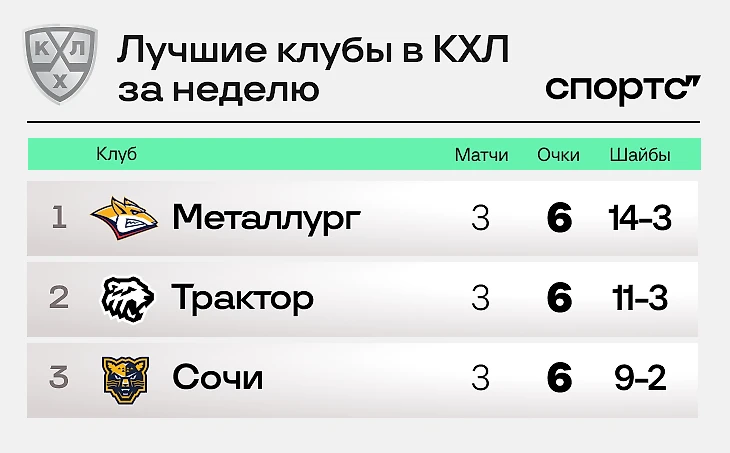 Лучшие клубы: прогресс «Металлурга» и резкий взлет «Сочи»