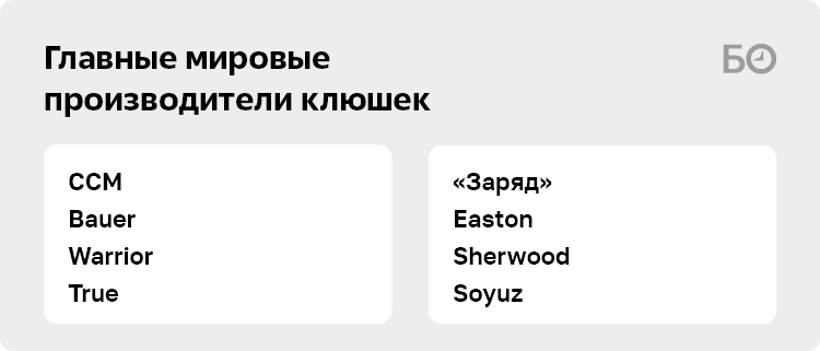 Что же из себя представляет Soyuz? Это новая для КХЛ компания, которая базируется в Беларуси, но ведет производство клюшек в Китае. Известно, что Soyuz строит свой завод в Беларуси: расположен он в особой экономической зоне «Великий Камень». Создавали ее по межправительственному соглашению между белорусской страной и Китаем, а бо́льшую часть затрат взял на себя госбанк развития азиатской страны. Получается, что второй самый крупный бренд СНГ корнями ушел в Китай. Это же можно сказать о других российских фирмах, которые изготавливает клюшки. Например, есть бренд Bro, цены которого на клюшку стартуют от 19 тысяч. Не так давно появилась компания One Timer, у которой даже есть лицензия от КХЛ.