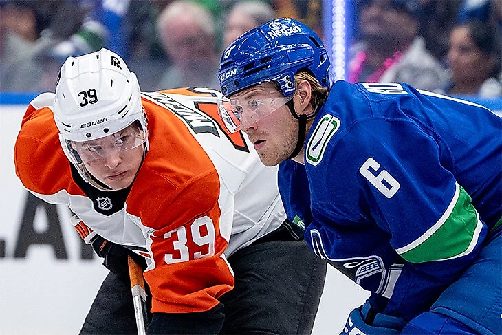 Матвей Мичков дебютировал в НХЛ. 19-летний нападающий не набрал очков, но «Филадельфии» для победы над «Ванкувером» они не понадобились (3:2 по буллитам).
