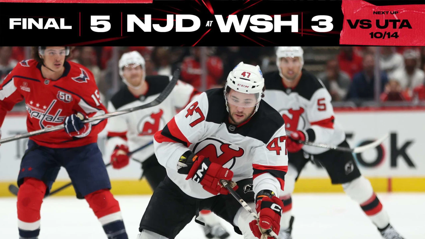 «Вашингтон Кэпиталз»-»Нью-Джерси Дэвилз» 3:5. Стефен Несен и Эрик Хаула отдали по 3 результативные передачи, Пол Коттер забросил 2 шайбы, Томаш Татар набрал 2 очка (1+1), Якоб Маркстрём отразил 29 бросков. У хозяев Дилан Стром и Джон Карлсон набрали по 2 очка (1+1), Александр Овечкин отдал результативную передачу.