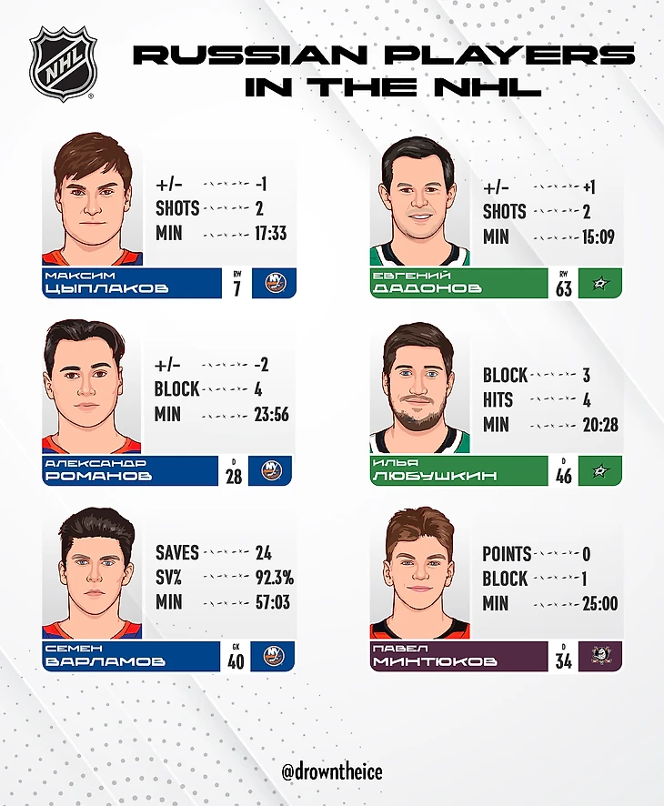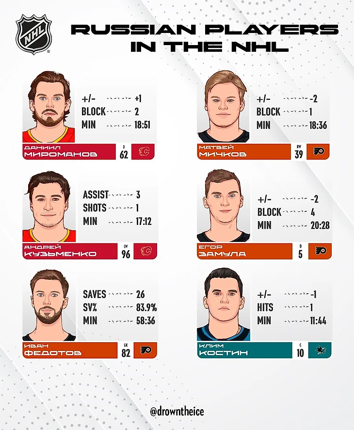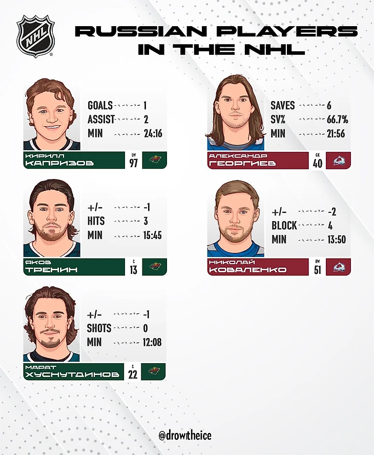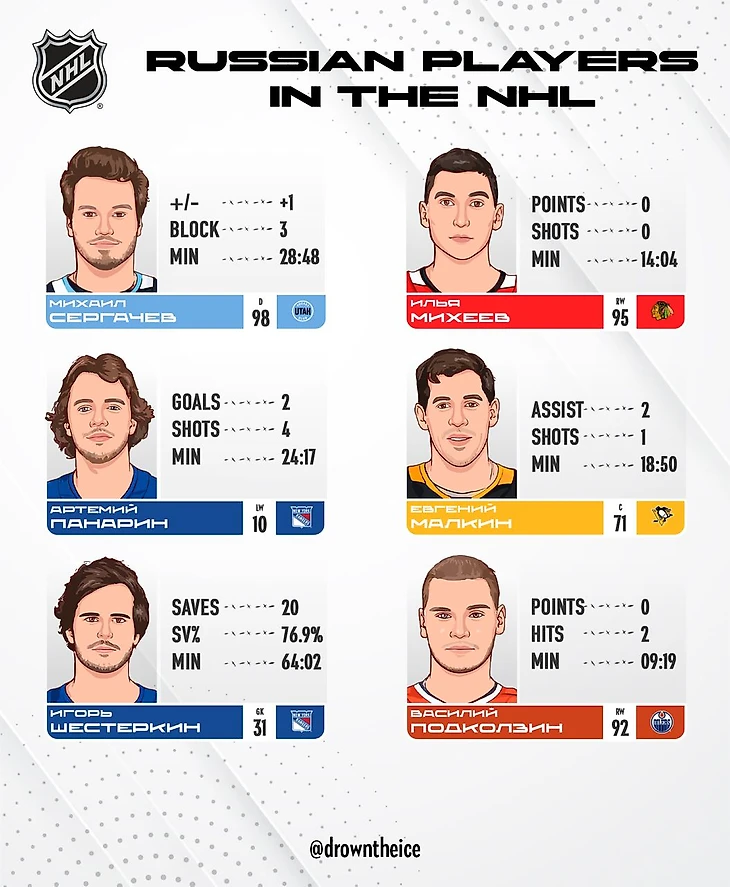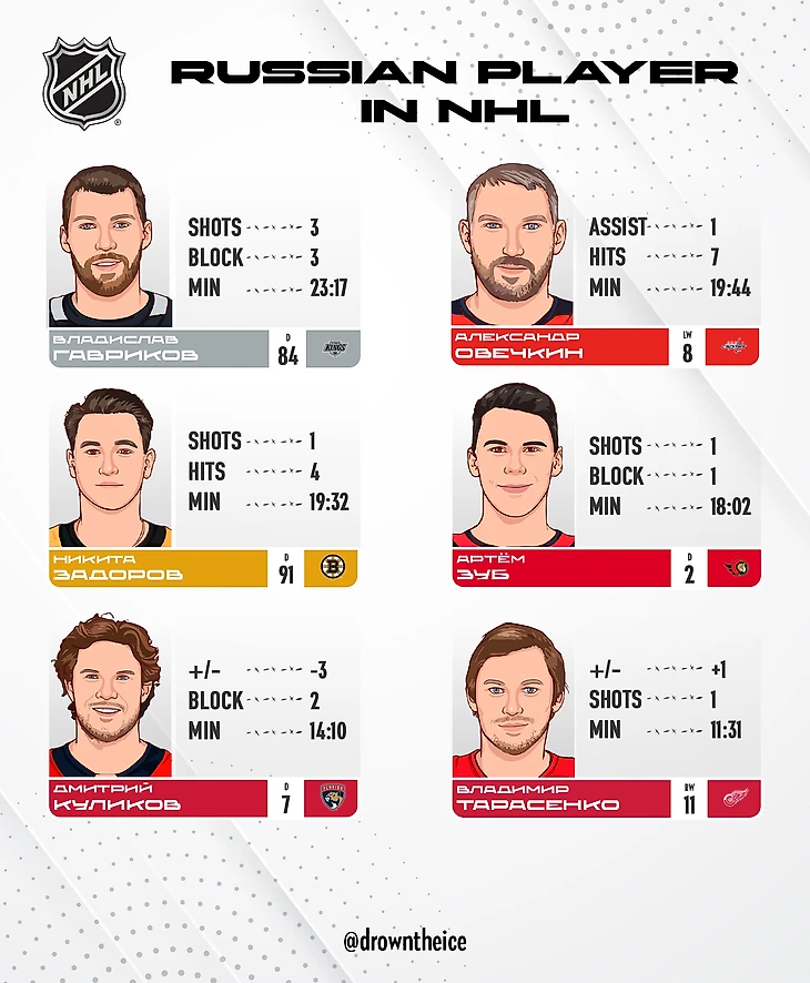 НХЛ: статистика российских игроков в картинках от 13.10.24