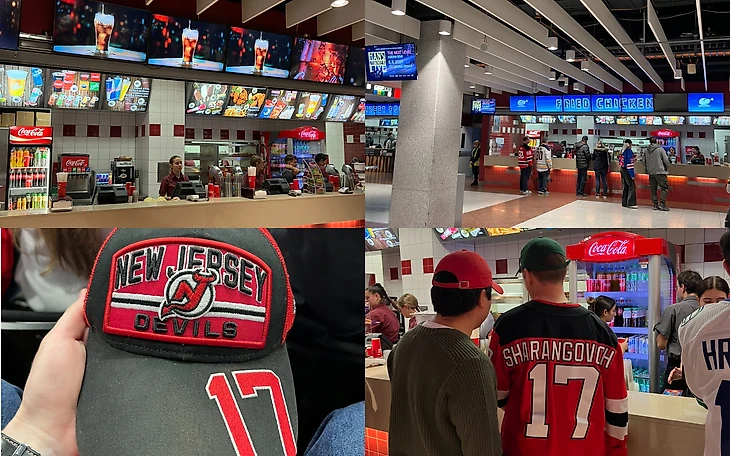 Приобретя небольшой перекус на фудкорте, я присоединился к столику, возле которого стояли трое парней в джерси «Дэвилз». У нас завязался разговор и оказалось, что двое из них приехали из Германии, а третий из самого штата Нью-Джерси.