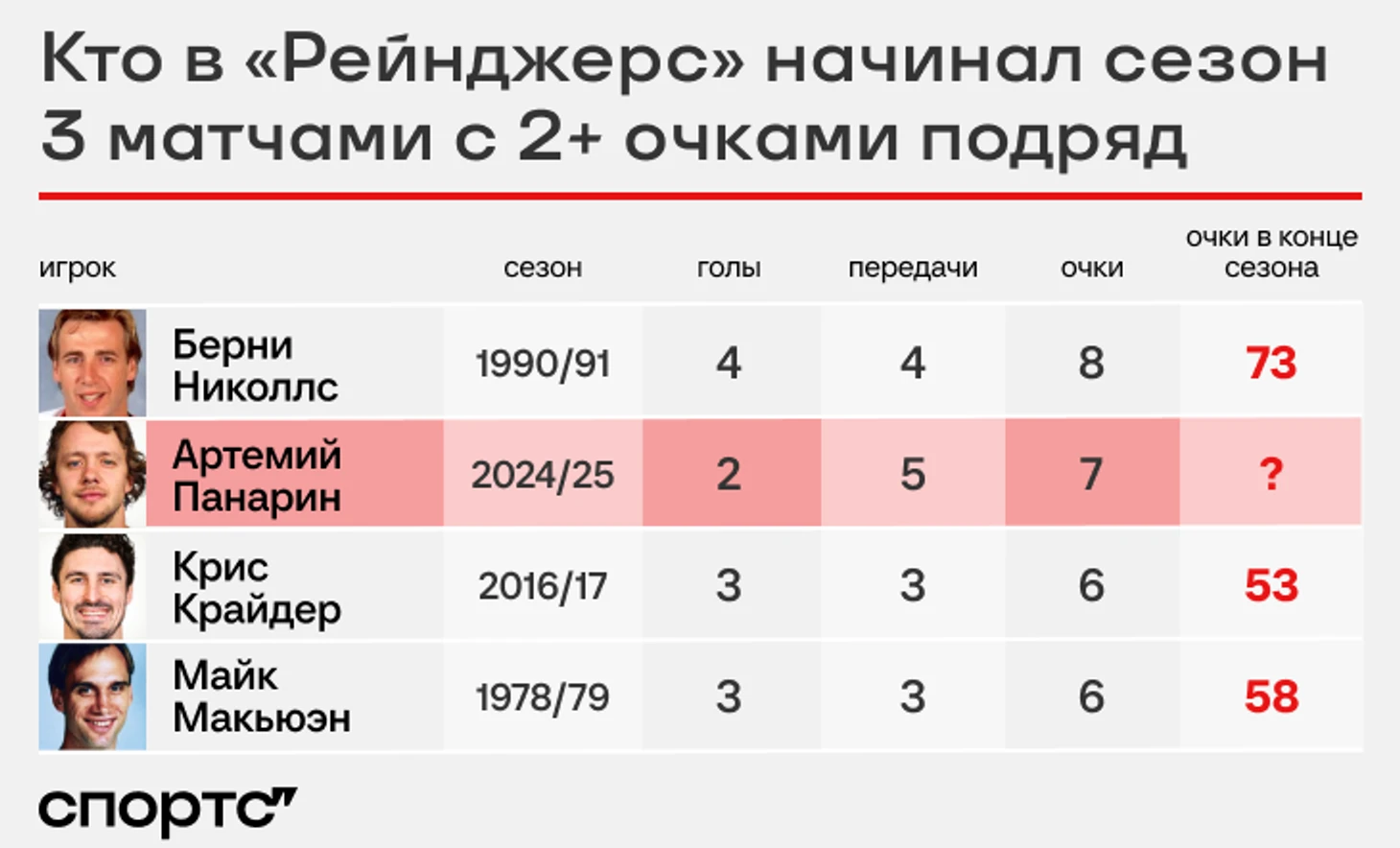 У Панарина настолько пошла игра, что он даже прописался в истории «Рейнджерс» – три стартовых матча подряд с 2+ очками до него были только у трех игроков: