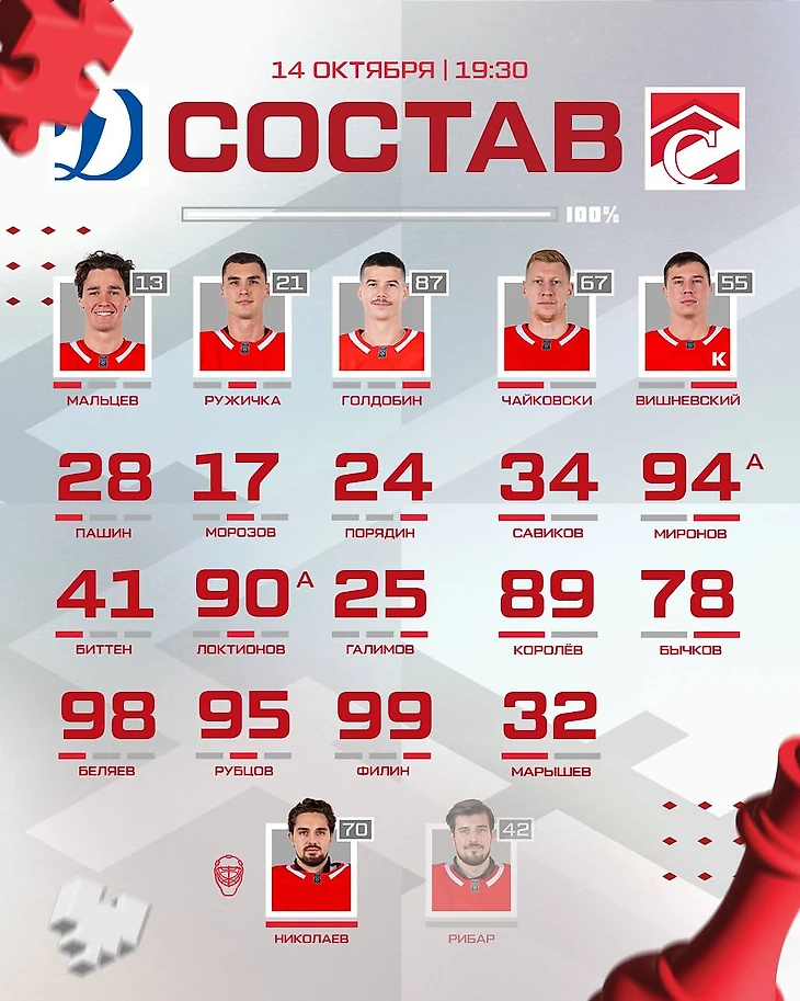 Спартак, как и все клубы, публикует состав перед игрой, и этот раз не был исключением, но мой глаз сразу же зацепила эмблема Спартака, которая съехала вниз. На самом деле, это не то что бы критично, ошибаться могут все, но я решил поинтересоваться в комментариях, почему эмблема съехала вниз. На мой вопрос мне ответили несколько людей, судя по аватаркам, это точно были фанаты Спартака. В основе своей сообщения были по типу: «всё равно», «пофиг», «ну так получилось». И это отношение фанатов к эмблеме клуба, и я сейчас не про графического редактора Спартака, который возможно торопился или не увидел, всякое бывает, а про фанатов. Я впервые вижу людей, которым безразлично на эмблему своего клуба, ну съехала и съехала, чего ныть-то? Видимо тут играет воспитание человека и его отношение к подобным вещам. Для кого-то это просто красный ромб с белой буквой «С» и белой полоской, а для кого-то это часть жизни,и часть не маленькая. Естественно я говорю не про всех, может, мне просто попались равнодушные люди, такое бывает. Может, я такой человек просто, но данная ситуация меня поразила. Я болею за Спартак вот уже почти 15 лет, всякое бывало. Возможно когда-нибудь я даже расскажу несколько забавных историй, в которые я попадал из-за своих клубных предпочтений, да и вообще про историю моей любви к этому великому клубу, но я точно никогда не относился так к ромбу. Я хочу, чтобы Спартак был примером профессионализма во всём, чтобы у моего клуба была самая красивая инфо-графика, самая красивая форма, самые интересные видео на ютубе и ВК. Может, я действительно много хочу и на самом деле это никому не надо? Но я смотрю и вижу, как Спартак старается делать и придумывать что-то новое и интересное, сколько альтернативной формы выпускается и сколько мероприятий проводится. Всё это привлекает много людей, которые раньше может и не очень интересовались хоккеем, но благодаря медиа ресурсу красно-белых узнали и в следующий раз придут на стадион. Теперь вернёмся к игре.