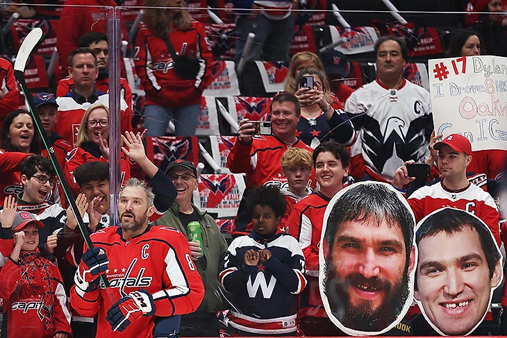 Теле- и киногеничность хоккея Овечкина не новость для тех, кто хотя бы иногда смотрит матчи с 2005-го, и очевидно, что из первых рядов он впечатляет еще больше – даже если твоя фамилия начинается на «М» и ты еще не знаешь, что возьмешь три Кубка Стэнли.