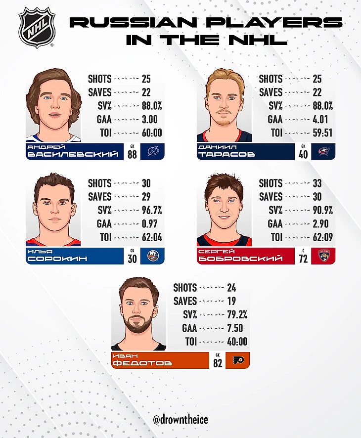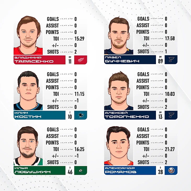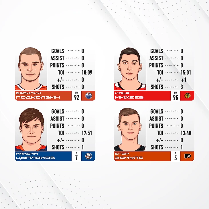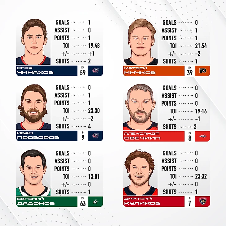 НХЛ: статистика российских игроков в картинках от 18.10.24