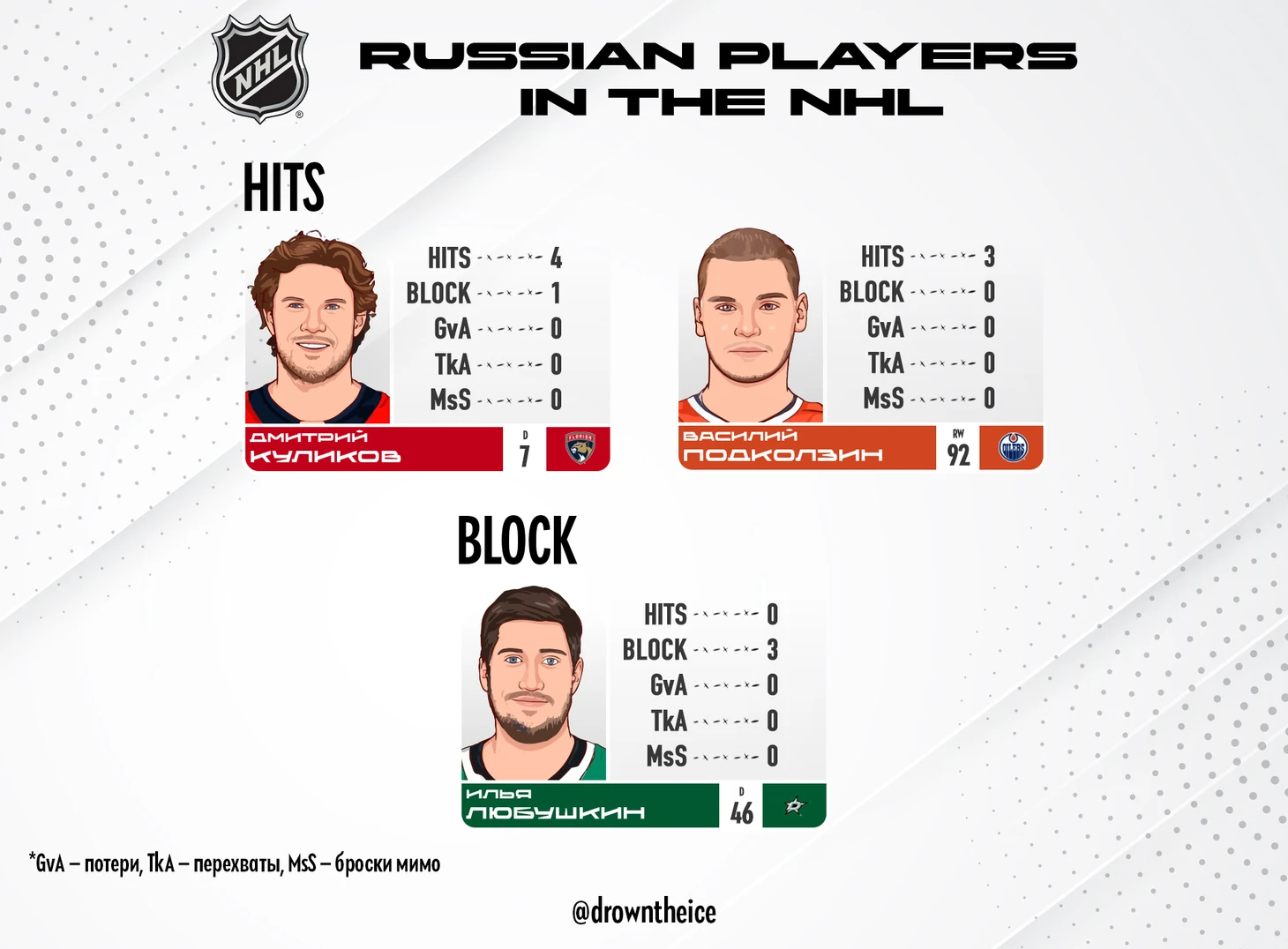 Продолжаю публиковать статистику российских игроков в картинках. Сегодня ночью 9 из 22 наших игроков набрали очки в матче.