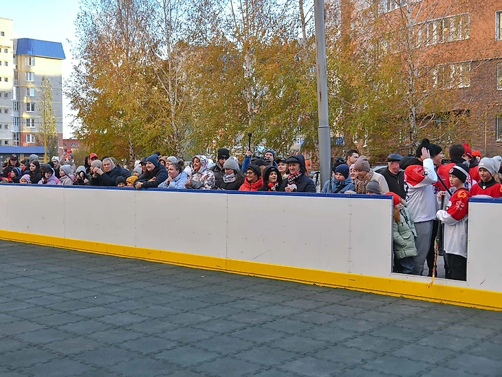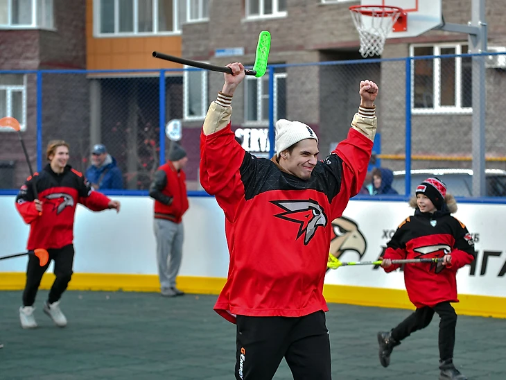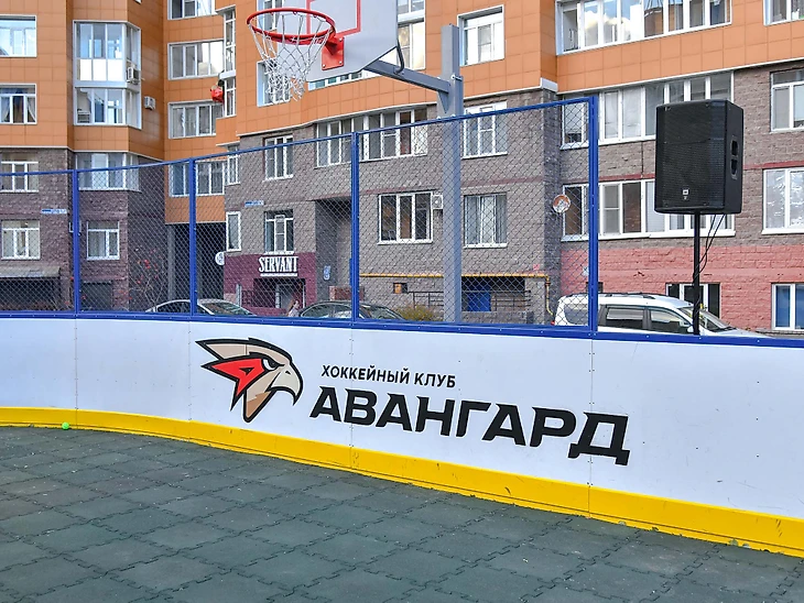В рамках торжественного открытия на новенькой площадке прошёл детский дворовый матч по хоккею с мячом, в котором приняли участие воспитанники Хоккейной Академии «Авангард», маскот Ястреб, а тренерами команд выступили Михаил Гуляев и Никита Холодилин – хоккеисты «Авангарда», прошедшие через всю систему омского клуба и пробившие себе дорогу в КХЛ. Правда, исполнять тренерские обязанности парням было особо некогда, ведь у них не было отбоя от желающих взять автограф.