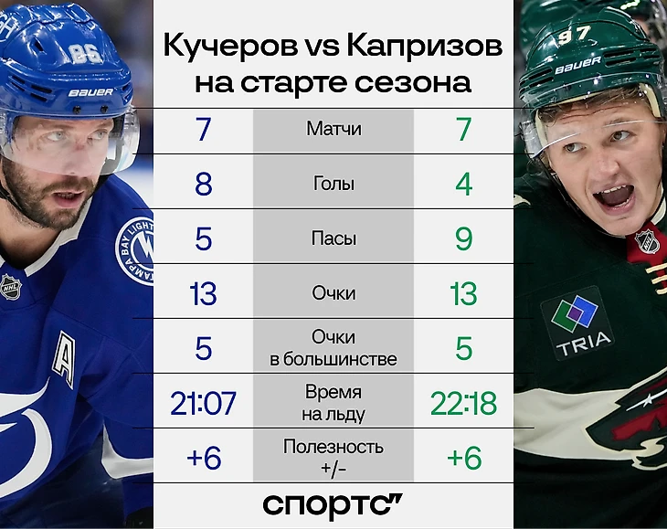 От битвы Кучерова и Капризова во многом и зависел исход матча: оба мощно начали сезон – к этой игре оба пробили отметку в 10 очков. Сегодня победа осталась за Кириллом – 3-1 по набранным очкам.