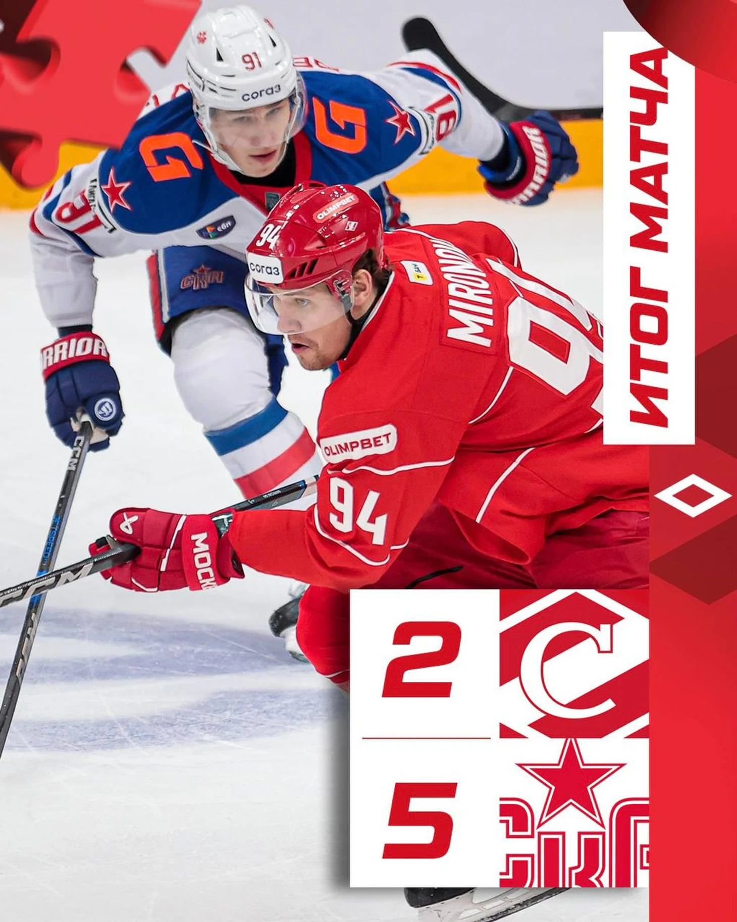 Петербургский СКА одержал победу над московским «Спартаком» со счетом 5:2 в гостевом матче регулярного чемпионата КХЛ.