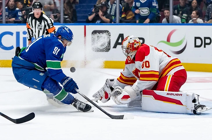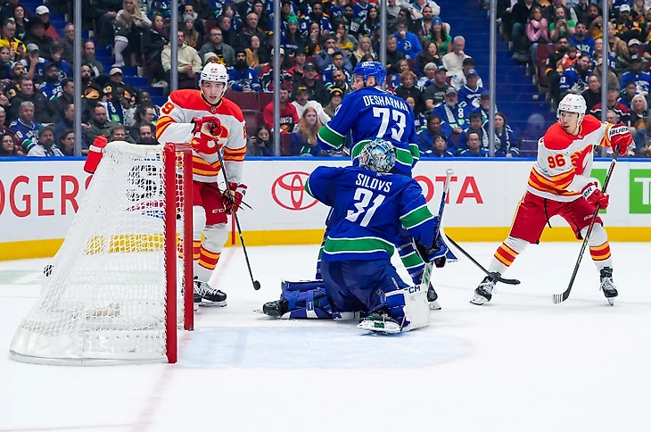 Все началось с домашней встречи с «Калгари». Удобный соперник для старта: райвал, на которого не нужно дополнительно настраиваться, уступающий при этом по всем раскладам на данном отрезке времени в классе. Первый период только подтвердил грядущую перестройку «Флэймз» и качество «Кэнакс». «Ванкувер» буквально уничтожал соперника на льду и конвертировал это преимущество в голы. 4:1 выглядели приговором для гостей, и сами «косатки», очевидно, посчитали так же. Вот только «Калгари» не сдался.