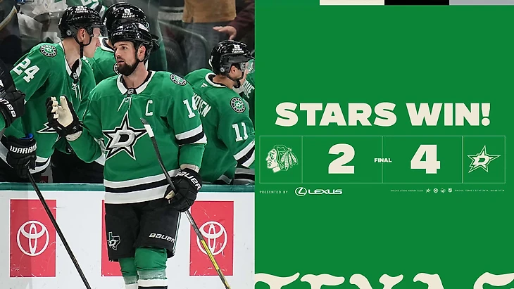 «Даллас Старз»-»Чикаго Блэк Хоукс» 4:2. Мэтт Дюшен забросил 2 шайбы, Миро Хейсканен отдал 2 результативные передачи, Евгений Дадонов забросил одну шайбу, Джек Оттинджер отразил 22 броска. У гостей Патрик Марун отдал 2 результативные передачи. «Чёрные ястребы» проиграли 4 игру подряд.