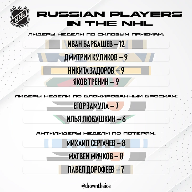 НХЛ: итоги недели для российских игроков в картинках 21.10.2024 — 27.10.2024
