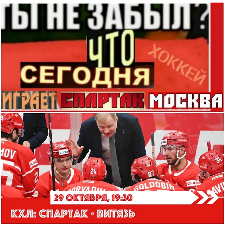 Матч КХЛ «Спартак» — «Витязь» запланирован на 29 октября 2024 года в 19:30 по московскому времени. Игра пройдёт в Москве, на стадионе «Мегаспорт».
