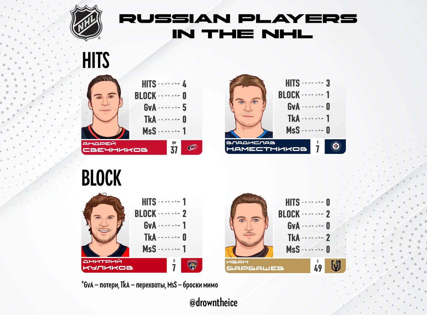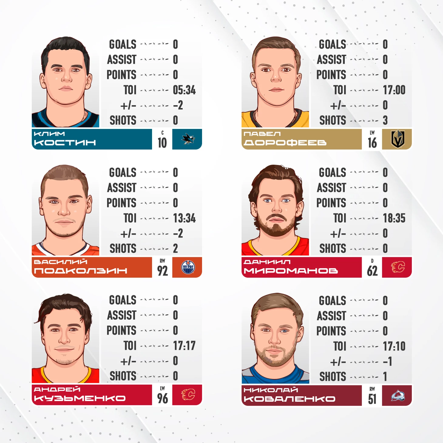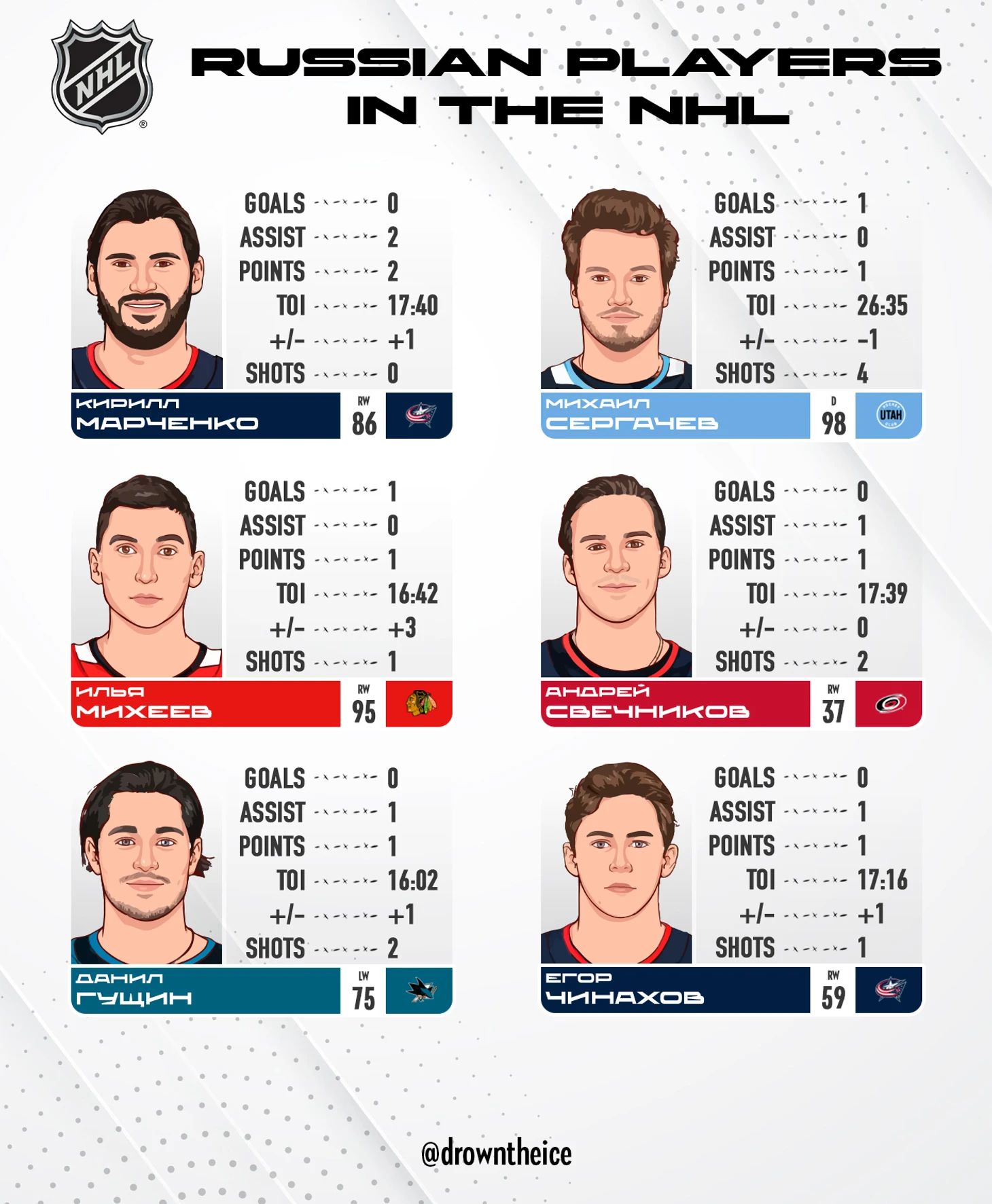НХЛ: статистика российских игроков в картинках от 29.10.24