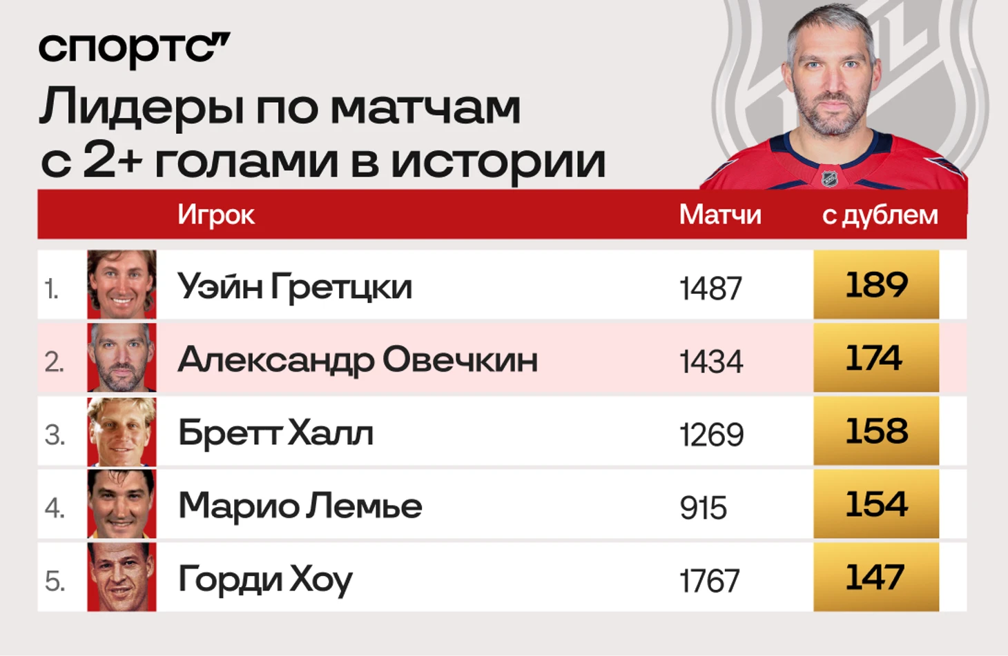 Это 174-й матч, в котором Александр выбивал больше одного гола – и по этому показателю он уступает в истории только Уэйну. Теоретически, конечно, здесь еще можно побороться.